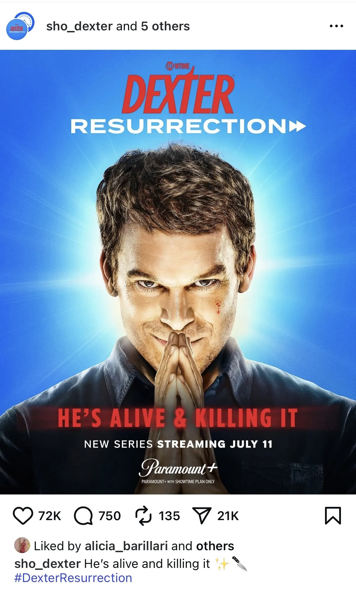 Our tagline and campaign made Dexter: Resurrection the most streamed premiere in SHOWTIME® history, with 4.4 cross platform viewers in its first 7 days.